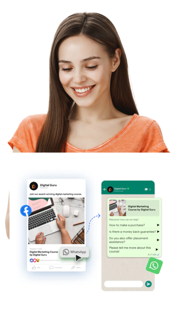 Maximize your marketing efforts with Click-to-WhatsApp Ads. Drive traffic directly to your WhatsApp conversations from ads, allowing potential customers to connect with you instantly. Gallabox helps you set up and optimize these ads for better reach and engagement.