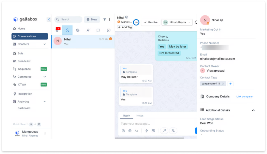 With Gallabox, transform your WhatsApp interactions into confirmed bookings seamlessly. Our platform enables you to automate and manage conversations, ensuring you never miss an opportunity to secure a booking. Enhance customer engagement and boost your business with our cutting-edge tools.
